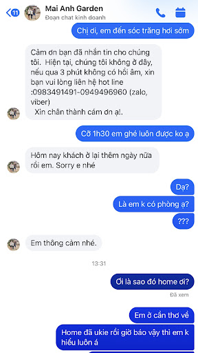 Home có chắc đây là cách home đối đáp lại với khách không? và nếu homestay có trách nhiệm thì đã báo với khách mới về tình trạng phòng đã không trống ( khi khách cũ ở lại ) rồi chứ không phải đợi mình xuống đến Sóc Trăng chủ động nhắn thì home mới nói.