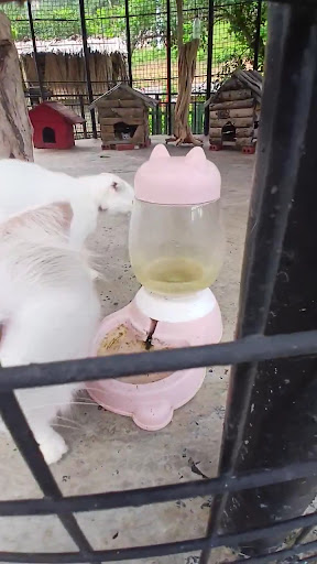 🔹 Khoảng 8 bé mèo, có cả mèo lớn và mèo con, bao gồm mèo mẹ đang cho bú, bị nuôi nhốt trong chuồng rất nhỏ chỉ khoảng 10m². 🔹 Nước uống của mèo bị tù đọng, ngả vàng, có rêu mốc và rất bẩn. Kiến bò vào thức ăn, ruồi bay quanh khu vực. Chuồng có mùi phân. 🔹Mình thấy một bé mèo tiến đến bát nước, ngửi rồi quay đi – thật sự đau lòng. 🔹 Mình chứng kiến nhân viên dọn dẹp chỉ đổ phần nước sẵn trong bát ăn đi chứ không thay nước bẩn bên trong (xem hình). Nhân viên không có phản ứng gì sau khi bạn mình góp ý nên thay nước.