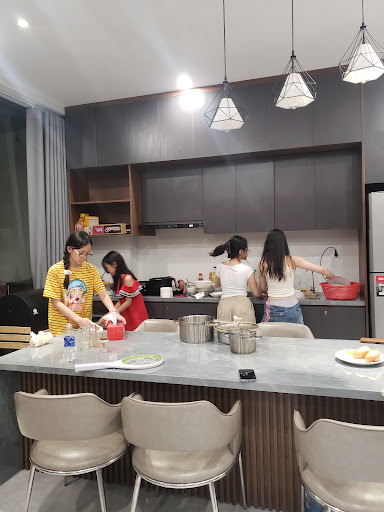 Nhà mới, phòng đẹp, phòng khách bếp khu sinh hoạt chung rộng, phù hợp đại gia đình hay nhiều gia đình đi nghỉ dưỡng. Villa 5 phòng ngủ mặt biển rất tiện, có người dọn dẹp, và có thể nhờ chủ nhà gọi Hải sản hay đồ ăn về nấu. Phòng khách có loa lớn có thể hát karaoke tốt. Chủ nhà chu đáo. Tuy nhiên bát đũa, bếp cần sắp xếp gọn gàng đúng chủng loại hơn thì...