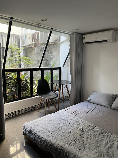 Phòng sạch sẽ, thơm tho, thiết kế tối giản nhưng ấm cúng. Mình đặc biệt thích những chi tiết nhỏ được chăm chút: từ cái rèm, chậu cây đến mùi tinh dầu thoang thoảng.