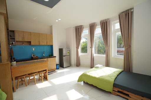 Phòng giống hình, sạch sẽ, thoáng, không nghe mùi khó chịu nhiều. Anh chủ nhiệt tình tư vấn, rep nhanh, mọi người muốn book phòng có thể lên fanpage coco hay nhắn Zalo anh chủ ý. Ban đầu mình đặt booking phòng 2 giường nhưng muốn đổi sang dạng căn hộ này, anh hỗ trợ rất nhiệt tình. Chị chủ cũng rất dễ thương, nhiệt tình. Sáng 5h 6h mình đi dạo biển thì có ông nằm canh cửa để bấm mở cho mình ra nên kh lo nha. Khách sạn nằm gần sát bên Donut Nga cho bạn nào muốn ăn thử trải nghiệm nè. Từ khách sạn sang bãi sau hay chợ đêm khoảng 1km trở lên nha. Bạn nào lười đi bộ ra biển nên cân nhắc. Điểm trừ là phòng mình 4 người nhưng ksan chuẩn bị chỉ 3 bàn chải, 2 khăn với 3 ghế chỗ bàn ăn thui ý. Giường không êm lắm nhưng decor khá đẹp nha. Chỗ đậu xe hơi là trên lề đường gần ksan nha mng. Hình này anh chủ gửi mình, phòng giống hình nên mình cũng...