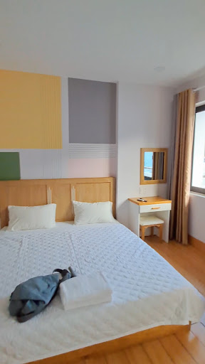 Read moreKhách sạn nằm trên đường Đinh Tiên Hoàng rất gần bãi sau. Vị trí khá thuận tiện để đi dạo biển. Đối tiện có quán ốc lẩu ngon, đỡ mất thời gian tìm quán ăn. Không gian nhỏ nhưng phòng ốc sạch sẽ. Điểm trừ: phòng bố trí giường không hợp lý lắm, phòng mình đặt 2 giường thì máy lạnh gắn lệch 1 bên khiến 1 giường rất nóng còn 1 giường khá lạnh, wifi rất yếu hầu như không xài được, dù mình lưu trú ngày thường không có nhiều khách. Gối dồn bông cứng khá cao nằm rất mỏi cổ không thể ngủ được. Nên xem lại gối vì không phải ai cũng nằm được gối cao Trừ thêm 1 điểm vì vừa đến đã bắt trả tiền phòng trước. Không biết do mình ít đi ở khách sạn nên mới gặp trường hợp này lần đầu hay sao, mà cô trực quầy lễ tân nói đó giờ luôn thu tiền phòng trước bình thường mà. Ủa là có nhiều khách sạn thu tiền phòng trước luôn hả ta? 🤔Vì cô nói chuyện cũng vui vẻ nên không khó chịu lắm, và cuối cùng khi check out mình mới thanh toán tiền phòng, chỉ thắc mắc xíu vậy thôi. À còn một điều là không gian để xe khá nhỏ, nếu ngày thường đông khách thì sẽ không có chỗ để xe hơi. Ai đi xe hơi...