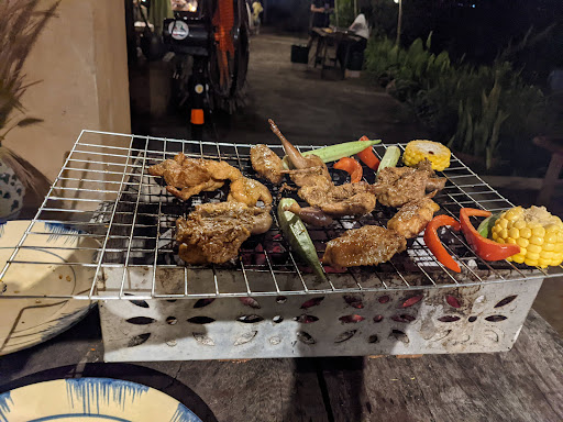 Read moreTình cờ thấy trên map hình nhà gỗ đẹp quá nên mình gọi hỏi phòng dịp lễ nhưng mà đã hết phòng, bữa đó chạy vô chơi mà hơi trễ, trời tối + combo lạc đường do đi đường tắt theo gg maps :). Đi tới đây thì các bạn nên đi thẳng đường lớn Lạc Long Quân tới cửa hàng vật liệu xây dựng Nghĩa, từ đây có 1 đường nhỏ chạy thẳng vào, khúc ngoài nhựa khúc trong đường đất nhưng đi cũng dễ chứ ko đến nỗi, trời mưa thì chắc là khó đi hơn, đi tay ga hay sedan vô cũng dc vô tư ko vấn đề. Đừng đi đường dân cư vòng qua gần hồ, đoạn 500m cuối là đường ruộng tối đen, kiểu xe bán tải offroad mới đi nổi, nên mình phải vòng ra lại. Ở đây thì cảnh, nhà gỗ siêu đẹp chụp hình bao xịn luôn. Có điều chắc bữa lễ khách đông nên chị chủ cũng hơi rối, không dc vui vẻ lắm. Với mình ko book dc phòng, chỉ vào chơi và gọi 2 phần nướng mỗi người 250k, tổng là 500k mà phần ăn chỉ như trong hình, mình thấy kiểu bị ít, dù phần thịt ướp ăn khá là ổn áp, còn rau xà lách trộn thì nước trộn ko ngon, như kiểu mua chai nước chấm siêu thị về bỏ thêm tỏi vào rồi đổ thẳng lên rau xà lách là xong. Nói chung ăn cũng...