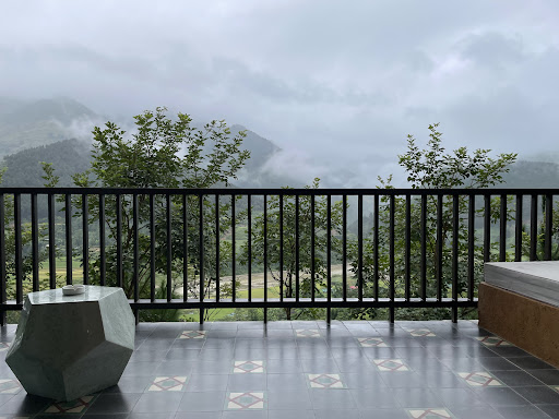 The good: When we arrived by motorbikes we were welcomed in by security and followed signs to reception where we were given hibiscus tea and given a rundown of the property and its amenities. Our bikes were moved to an appropriate spot for us and we were driven to our room. The bungalow we stayed in was comfortable and had almost everything we needed. We asked for two more pillows for the bed considering the pillows were on the thin side and they delivered them to the room. The bed was very comfortable and the curtains blocked out the sun so we could sleep in if we wanted to. The pool was cleaned each day and the view from the infinity pool was pretty spectacular. The restaurant is right behind the pool so you can easily order drinks while relaxing there. We were frequently the only ones there so it was quite peaceful. The breakfast was very good and had a balance of Vietnamese dishes and Western options. The juices, mocktails, cocktails were all quite tasty. The staff are all very friendly and try to accommodate English speakers. The property sits above a town and looks out onto the valley. When the weather is good the views are immaculate.