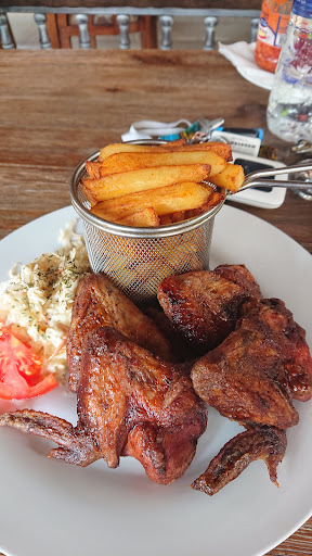 My Habitat group stayed here on our last night in Africa. We all had double rooms (two beds). Each of them had a king and a twin. The twins were acceptable as matresses go, but the kings were literally just box springs. My friend in a different room complained and they took one of the twin matresses from another room and added it to his box spring after a disagreement. The hotel told him that the expectation is that over time, the "matresses" will get softer. (they won't - I'm telling you, they are box springs!!) He won the argument by explaining that this won't help him sleep tonight. I and others, however, folded our comforters over a few times to create a makeshift sleeping bag upon which to sleep. Wow. Horrible||We also ordered lunch at the hotel restaurant. It took at least 45 minutes for the first plate to come out and then it was a trickle for 10 minutes or so. The menu had all meat dishes so nothing for vegetarians or those sick of meat.||THere are nice hanging chairs by the pool and I took a nap in one of the double sized ones the next day. In retrospect, I should have taken my comforter out there and slept in the pool side chair instead of attempting sleep on my box spring.||There is a Debonairs chain pizza restaurant a block away and a Pick n PAy, but don't walk there after dark. Safe...