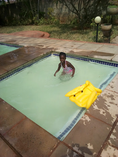 It has self catering services, parking space, private and quiet, with a cool lapa by the pool side where you can do a braii, location is set up in a quiet surbub walkable distance ( 5 minutes into town), hospital near by. Lovely steel cushioned seats...makes you feel at home, you can perch by the verandah for...