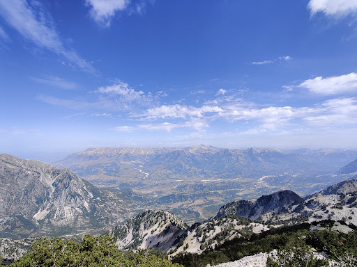 3.5 or 4.6km to Maja e Qorës from the trailhead (next to the Panorama restaurant) depending which sign you want to believe (double it to come back down). I did it in a little over 4h with stops for photos and lunch. The trail is easy to follow (in dry weather, no idea for winter months with snow) and apps like Komoot are fairly accurate. There are no water points or any kind of facilities once you've started the trail so bring plenty of water. Some parts are quite steep but overall if you're in shape it should be considered as a moderate trail. Note that the last 500m are a bit technical though, pretty much scree only so you might find yourself using your hands to crawl a bit but the view at the top is...