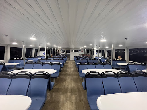 A pleasant surprise: the upper deck restaurant offered a tasty menu featuring fresh fish, with a lovely view of the harbor. It really completed the experience.
