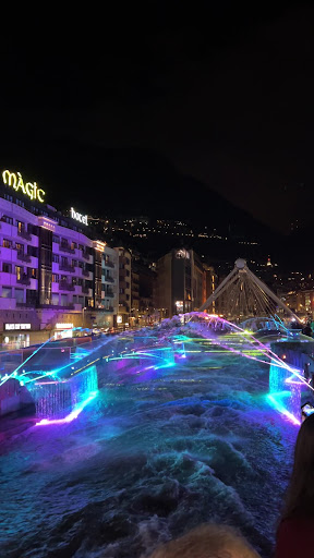Le Pont de Paris, situé à Andorre-la-Vieille, est l’un des ouvrages les plus emblématiques de la ville. Il enjambe le fleuve Gran Valira et relie deux parties importantes de la capitale. Construit en 2006, il se distingue par son design moderne, avec une grande structure métallique blanche en forme de demi-sphère, outenant le pont par des câbles. Ce pont est particulièrement photogénique, notamment grâce aux lettres géantes "ANDORRA LA VELLA" qui y sont accrochées, devenues un symbole incontournable de la ville. Il est souvent illuminé la nuit, offrant un spectacle visuel agréable aux passants. Facilement accessible à pied depuis le centre-ville, il se trouve à proximité de nombreuses attractions comme l’avenue Meritxell, le principal axe commerçant. Il est aussi un point de passage idéal pour une balade le long des rives du Valira. Très apprécié des visiteurs pour ses perspectives sur la ville et la rivière, le Pont de Paris est un lieu de passage incontournable, que ce soit pour une simple promenade ou pour immortaliser son séjour en Andorre avec une...