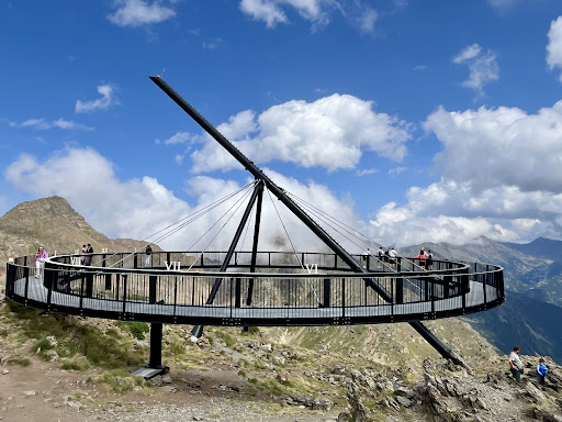 Lazy ascend via cable car and then ski lift (22€ to go up and down on two installations). You will then need to walk 10min up to the Mirador Tristaina round monument thing.