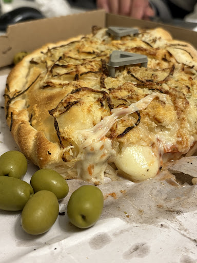 Read moreConocemos casi todas las pizzerias del barrio y mas. Buena pizza, lo unico q al ser a la piedra se pone la pizza todo junto, la muzza se derrite pero no en su totalidad, es como q hay q masticarla y no se disfruta tanto, unos segundos mas de horno un poco mas bajo para q no se queme estaria bueno, se derretiria mas, esa es la que juega. Tienen un 8, mas arriba...