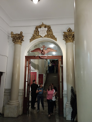 Gran Templo de la Logia de la Argentina de Libres y Aceptados Masones. (1872) (fundada 1857) Juan D. Peron 1242. Obra del Ing. Charles Henry Pellegrini -masón de origen francés y padre del presidente- (primera etapa) Arq. Francisco Tamburini (segunda etapa) -por enfermedad de Pellegrini finaliza la obra-. El edificio se organiza en dos plantas y a partir de una columnata, retirado de la línea municipal por un pequeño jardín. La fachada es cóncava, diseñada así probablemente para dar mayor sensación de amplitud a su angosto frente. También puede ser para representar un abrazo fraternal de bienvenida. Su fachada con cuatro columnas, donde las dos centrales de grueso diámetro y gran altura, jerarquizan la entrada. Al ingresar un amplio pasillo marca la importante escalera. A la izquierda del pasillo se encuentra la biblioteca Joaquín V. Gonzalez y el Salón Republica. En el primer piso se encuentra el Gran Templo, donde se destaca el cielorraso pintado como un cielo, con el sol en un extremo y la luna en el otro. Sobre las dos columnas de la entrada está el mural "Energía Universal" del artista Enrique Fabris. El inmueble posee un alto valor histórico y cultural por haber sido escenario de importantes reuniones protagonizadas por personajes como Bartolomé Mitre, Domingo Faustino Sarmiento, Carlos Pellegrini, Alfredo Palacios e Hipólito Yrigoyen entre otros. NOTA: La Masonería es una sociedad civil que trabaja por la utopía de la fraternidad universal y se dedica al perfeccionamiento moral e intelectual de las personas apoyada en los principios de Libertad, Igualdad y Fraternidad bajo el lema “Ciencia,...