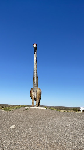 Along the way, we passed a massive dinosaur statue near Trelew — a replica of the Patagotitan mayorum, one of the largest dinosaurs ever discovered. It was such a fun and unexpected stop and a great way to break up the drive. Our daughters loved seeing it and learning that real fossils were found in the area.