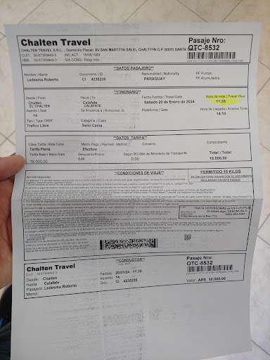Read moreI recently booked transportation from El Calafate to El Chaltén through Chaltén Travel and had an excellent experience. After my booking, there was a change in the service, and they contacted me well in advance to inform me. They provided clear communication and offered alternative options to accommodate my plans.