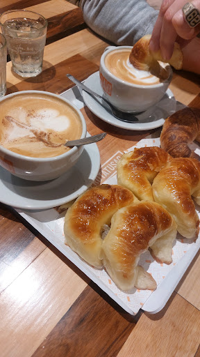 São medialunas, si bien arranco have como 50 años la posta es que se hizo famosa o trendin topic hace unos 4/5 años. La propuesta central es desayuno/merienda, Vendria a ser como un starbucks criollo, ya que tenes opciones de cafe frios y calientes, batidos, y smothies. Y para comer tenes muffings, tostados, y la vedette del lugar laa medialunas, la clasica, que es una bomba, te comes 15, y ni hablar de las rellenas, escribo la reseña y se me hace agua la boca, de pastelera membrillo, chocolate avellanas, pedite una de cada una y compartilas porque ademas de ricas son una bomba, y si te quedo lugar, te desafio a probar el corneto con jamon y queso, es un viaje de ida, Droga gastronomica. Todo eso lo pedis en la barra le das tu nombre y te elegis la mesa y cuando esta el pedido te suena la chicharra elecrronica, eso si, no te pases de goloso ni comas por los ojos, porque la comida es bastante pesutti, te diria que con 3/4 medialunas rellenas estas...