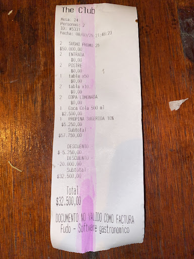 Optamos por la opción de $25.000, ya que incluía salmón en las primeras 50 piezas y el supuesto postre.