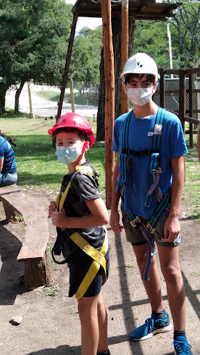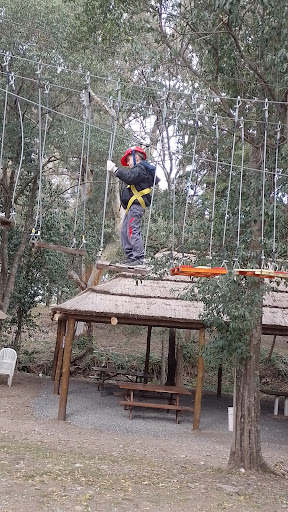 Excelente parque aéreo atendido por sus dueños y profes que hacen de la estadía un lujo. Pueden comenzar con las vueltas y tirolesas, luego seguir con arco flecha y palestra. Después se puede jugar a muchos juegos, casitas, triciclos, deportes con pelota, brochas, tejo, mini golf y pequeño inflable. Se puede llevar mate y cosas para comer, hay mesas y quincho techado. Servicio s agua caliente. La entrada al parque cuesta $10.000 conas tirolesas y $1000 para aprovechar...