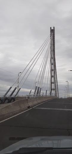 El mejor puente, lo que deberían mejorar es ponerle dos pilotes en el medio donde pasan los autos, osea que los pilotes cubran los costados donde actualmente pasan los autos, para que pasen a los costados junto a los tirantes, y una senda a los costados para que la gente camine, es un puente que si se ponen las pilas puede mejorar , los bordes del medio están oxidados y le falta limpieza, yo le pondría dos pilotes y un sistema de luces a la noche para...