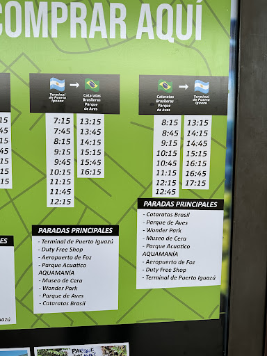 Read moreUpdated July 2025 How to get to Parque das Cataratas / Parque Nacional do Iguaçu (Brazilian side Iguazú falls park) from terminal de Puerto Iguazú: As there was little information on internet, I try to summarise it so that everyone can visit the Brazilian side of the falls. Buy a ticket from either EASYBUS (50R, can pay with card) or Rio Uruguay (14000 Arg peso, cash only, or need to go the the office to pay with card). You can buy the ticket at the bus station directly Bus schedule 1 hour interval (attached the schedule of both companies). You will need to cross the border of Argentina side (everyone get off the bus, and get back to the same bus together) It takes about an hour to go to Parque das Cataratas including crossing the border. Don’t worry, just ask the guy from EASYBUS, he is very nice and can speak English.