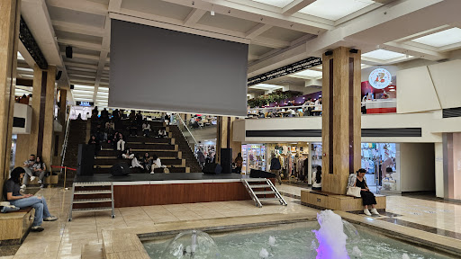 ужасный поздземный переход, который захватил этот торговый центр. Могли бы раз уж завладели этим общественным пространством сделать удобный проход для пешеходов, но нет. Фишка этого перекрестка в том, что по улице не перейти его, вы ДОЛЖНЫ спуститься в этот переход. Внутри в 1-ый раз вообще не понятно куда ты попал и куда идти, навигации нет. Но, это не главная проблема. Для целей торгового центра этот переход сделали ДВУХУРОВНЕВЫМ, пешеходам это, конечно, вообще не надо. Но и тут не всё хорошо, я не знаю почему, но днем, в этом горе-пешеходном переходе НЕЛЬЗЯ спускаться по обычной лестнице. Ходит охранник, натягивают красную ленту, что по лестнице в пешеходном переходе спускаться нельзя. Можно только по эскалатору, но мне как пешеходу из-за этого приходится делать лишний крюк. И самое смешное, что после 22:00 они эту ленточку убирают и по этой самой лестнице подняться можно, т.к эскалатор уже не работает. В общем, я страдаю почти каждый день, и стараюсь если возможно строить свой маршрут так, чтобы никогда не попадать в позор городской...