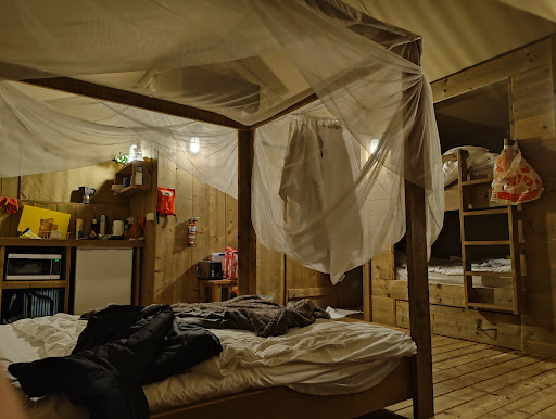 Winter traveller - Glamping @ The Safari Tent (Elephant statue), the tent is quite spacious and provides a heater and aircon. Pretty well and quite powerful for the heater. You may need to bring a portable heater and extension wire if you need a warmer to sleep in the sofa bed or for movie night ( you have to bring along your projector and project on the tent). There is no TV as a camping idea.)