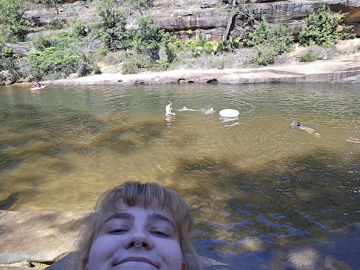 Read moreIt's quite a small 'pool' but it's so cute and such a great place to enjoy a little swim in nature. I came here on a semi-warm day and it was a bit busy, so I can imagine on a hot day it would be overflowing. I love a nice day in nature and this is a great spot to do it - plus the ranger at the front gate will tell you if there is parking and such before you go in so that's a nice service bonus! Just be careful driving down as it's basically a one lane dirt road p.s. my friends arm in that panorama is...