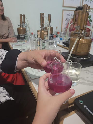 Gin time baby Provided with fancy schmancy labels (with plenty of space to write your botanical choices and a s/wanky name for your newly created wine, you have the choice to colour your wine or leave it âau naturalâ. I chose âAtaahuaâ â which is Maori for beautiful, while my lovely lass went with âSpicy Bloomâ â we both decided to choose a reactive colouring (it changes colour if you add tonic to itâŚ..science hahaha)
