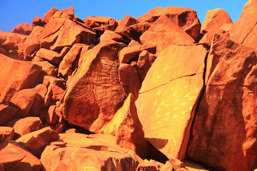 There are innumerable sites spread throughout the Murujuga National Park at the peninsula’s north end, as well as across the islands of the Dampier Archipelago offshore.