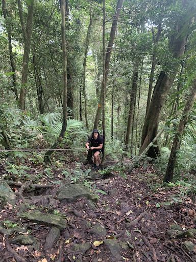 Read moreExtremely challenging hike totalling almost 8km return with 724m gain in elevation. The carpark is small, only enough room for 3-4 cars so we parked in the Cape Trib beach carpark. Trail begins by small sign on the left side of the road and is marked by orange triangles throughout. The entire trail is narrow and many parts are overgrown with spiky palms. Two fallen trees requiring re-route around. First 1km is almost entirely ascending. Short decent and flattened around at beginning of the second km then met with 50m rock scramble with rope to assist (actually my favourite bit). Last 1.8km is in the clouds, wet, steep and appears to go on forever. The 3km marker was hidden by a fallen tree for us. Saw leeches at the top but they kept away as we used 40% deet. We started the hike on a blue sunny day and were met with thick cloud at the top with no chance of any kind of view. We also didn’t carry enough water, recommend 2-3L per person, you will sweat all of it out. Overall I would only recommend this hike for those seeking the challenge and wanting a truly ‘authentic’ Daintree rainforest experience and not tourists who are expecting a...