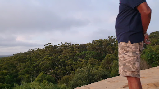 You can walk right up to the cliff to see the amazing rainbow beach extend all the way upto Double Island. Sunrise and Sunset are both beautiful from the Carlo Sand Blow.