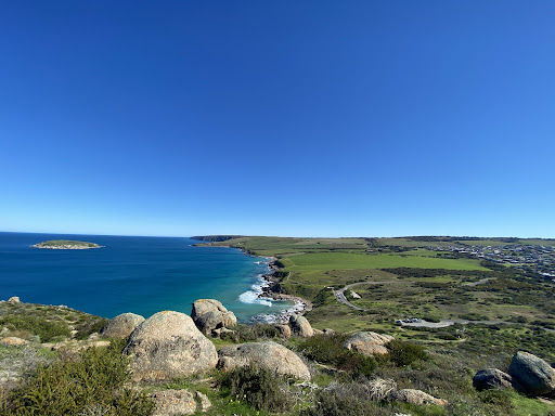 you can park close to the top (400m away) or further down depending on how far you want to walk/hike the views are gorgeous -there are several chairs to rest on along the way lots of cute spots to take a top of the bluff selfie Marked trail for the main parts of the hike not a huge hike, can do it within an hr and that’s with some time stopping along the way to look at the views you might see some cute fauna along the way 360 degree views of victor harbour and the coast and all the islands! mostly quiet and you’ll Probably have it to yourself