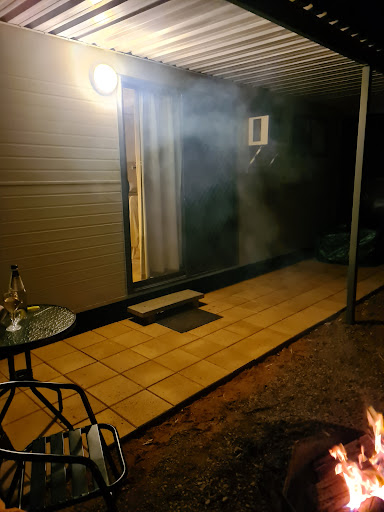 The new cabin location some bright spark decided to put the firepit about 3 metres from the cabin door entrance so have a guess which direction the smoke decided to travel in...yup even with minimal opening and closing of the cabin door everything smelt soo badly of smoke.