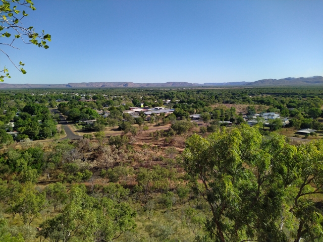 Awesome views of Kununurra to the west, south and beyond, some traversing the steps to the lookout, parking for a few cars, on the other side where you park is a no vehicle access road/path to some more views to the north, allow some time to do the return trip, maybe 20 min ea way, I can't remember, worth a visit if staying in town or passing through, Kununurra and surrounding areas have a lot to offer if you have the time, Lake Argyle, Celebrity Tree Park, and the Bungle Bungle Ranges, museum, and Aboriginal Art Centre, and Arboretum, between the border and Kununurra you will find Zebra Rock Mine, a...