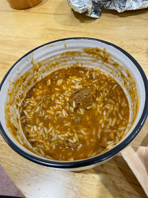 The lamb chunks were few, and they were swimming in the curry, the rice was okay; together they didn't fill up the box they came in. Taste wise, it was average. Not bad, but a little low on the seasoning. The salad was okay, and the chutney was the best of the bunch. Fresh, cool and delicious, it elevated the whole food.