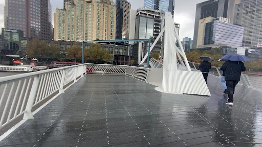 The bridge itself is not just a crossing—it’s a symbol of Melbourne’s modern renewal, encouraging people to walk, connect, and enjoy the riverside. From here, you get spectacular views of the city skyline, the Southbank Promenade, and the famous Flinders Street Station clocktower. On one side, you can see the lively cafes and restaurants of Southbank, and on the other, the historic heart of Melbourne.