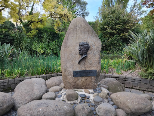 This memorial, erected in the Treasury Gardens, commemorates United States President John F Kennedy (JFK) who was assassinated on November 22, 1963 in Dallas, Texas. Erected in 1965, it's in the form of a Bronze bas-relief of the head of the President and a plaque with his name and the years of his birth and death set in a granite boulder and sited in a tranquil Japanese Garden setting within the Treasury Gardens. The beautiful landscaped Japanese Gardens incorporates an ornamental lake, with waterfall feature, several fountains, and a paved area and seating.