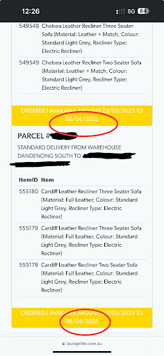 Later that day we realise that Lounge Life did end up charging our credit card for the remaining amount (even though she said our card failed) but didn't bother advising us that it went through. Lucky we got the notification from our credit card because if we ended up do a bank transfer we would of double paid.