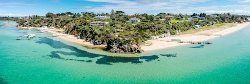 A wide expanse of sand nestled amongst a backdrop of mansions. Very picturesque with some old jetties to jump off in to the water. Very limited parking (about 25 spots) on a very dusty gravel road. About a five minute walk to the beach...
