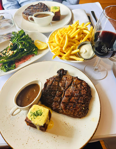 [Long rave review alert!] First let me explain my 5 star rating for Sam's Bar & Grill It was Sunday afternoon lunch, a laid-back post-event celebration of my daughter's birthday. Just us two. We'd made a booking, had a nice window table looking out at Camberwell's Burke Rd with its quiet Sunday face on. Easy parking, spots around the corner, short walk. Straightaway, I love the interior and ambience. Interesting wall mural, subdued lighting, well spaced tables with full settings. Music just right, gentle lounge, at the perfect volume. And one of my absolute loves: Intelligent interior decor to stop a cacophony of echoes and overloaded ears (I am in my 70s). When the harshest sound is the occasional shirr of a cocktail shaker, you know they are doing it right. Service: Warmly welcomed and shown to our table, never had to wait or attract anyone's attention for service. (That's an art in itself, worth all 5 stars) As were the friendly, smiling young staff. (I was seriously contemplating adopting them) The menu is very good. We were there for the steaks and were going a la carte, but noticed that they have well-curated set lunch offerings. Which may be our less expensive option next time. We both had scotch fillets. Minimal sides: Broccolini for my daughter, chips for me. The steak served with a potato galette and peppercorn sauce. Enough detail. Others have described the excellent food in detail. For me, everything was done to perfection That's my 5 stars. But then... While paying the bill at the bar, the lovely young lady server asked me if I could stall for a few minutes as they had a small surprise. Which was an entirely unsolicited complimentary dessert to share with a small birthday candle alight. AND... as I told them, they had turned a terrific dining experience into a memorable one. So... I am forced to stop at five stars because that's all I have to give out. For Sam's Bar & Grill ... I wish I...