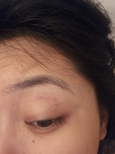 When they were doing my lashes. I was asked to sit on a chair when they were doing it. They were doing it so aggressively on my lashes, the hands were all over my face and I could feel the fingers digging into my eyeball. I tolerated it because maybe it’s difficult to do it on the chair. But they also put glue on my forehead, and that’s when I confronted them and ask why would put products on my forehead. The lady responded no I didn’t put anything on your forehead and proceeded to wipe it off with a wet cotton pad. When it ended the lady just used a wet cotton pad to wipe the chemicals off, it touched most of the skin near my eye area