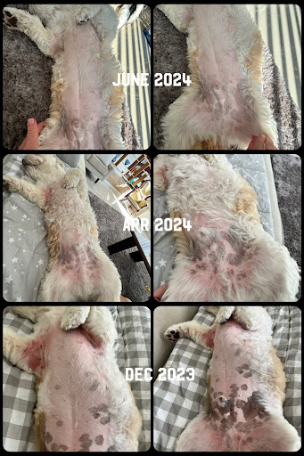 Roxy is still on her medication but tapering slowly off them all, her skin was so dry, cracked and thinning out from the steroids. We have now changed her diet to Lyka, added a probiotic and omega 3. No more harsh shampoos or conditioners. Just a diluted QV baby bath oil wipe down daily to keep her clean and her skin moist. We have seen a big difference in Roxys skin, mood already and hair regrowth. It got to the point where the vet told us that this was up to us now and we did our research. Makes sense though, heal from the inside. For a dermatologist with a bachelors in dietics and nutrition I thought this would have been mentioned?