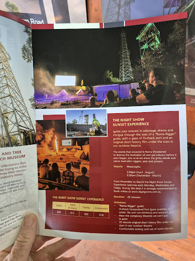 Got some great little gifts in the gift shop. We got a shirt and they kindly agreed to post another once the order came in... Thank you!! Not a bad little show. Get the 5.30pm night show rather than the 6.30pm if you are doing day and night. It's not very clear that the place closes at 5.30 & then you have to come back at 6.30 for the night show. We were advised that last entry is 5 so turned up at 5 and were told we had to be done by 5.30, then come back at 6.20 for the night show... The night show lasted for more than an hour (because of questions mainly) the presenter was knowledgeable and spoke well. The first part was held on the floor of the rig, which was great to create atmosphere. It would be good to have the posters/historical pictures on a screen for everyone to view at the same time rather than the presenter walking around holding them up for everyone to look at. The second part was an outdoor 4D theatre which was quite entertaining. You get a shot of Port which really is "fkng good Port" as per its name. Was a good show and if you're in Roma you should definitely...