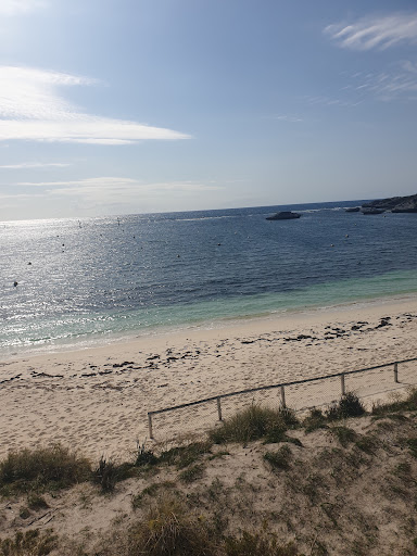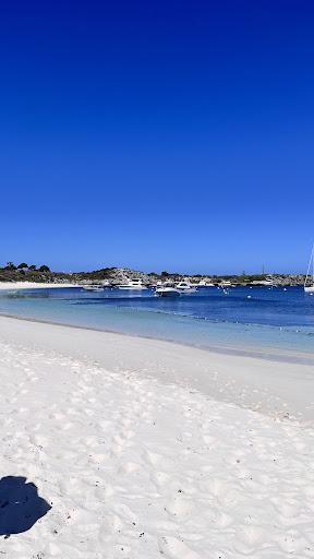 A truely wonderful service to boaties, vacationers and day trippers visiting stunning Geordie bay. Always reliable food and drinks are provided from early morning to 4pm (at which time tables are progressively closed and reserved ready for the a la carte dinner service that starts at 5pm. 4 nights a week. Great food and coffee, many healthy real fruit smoothies and juices as well as beer, wine and cocktails all provided with a smile, even when it becomes ridiculously busy over the Christmas season. Situated right next to the supermarket and laundromat it's the heart and soul of Geordie Bay's commercial centre. They are very helpful too, for example giving helpful items to local boaties in need and providing extra services like giving access to their big blue bin (behind the sliding gate near the entrance - see picture) So that socially conscious locals can recycle their 10 cent cans and bottles. They even donate the money raised to the Rottnest Foundation or the Scouts a truly great thing to do. ( Especially since the Rottnest Board bureaucrats are taking so long to introduce their own version of this arrangement at the public bin service at the jetty...