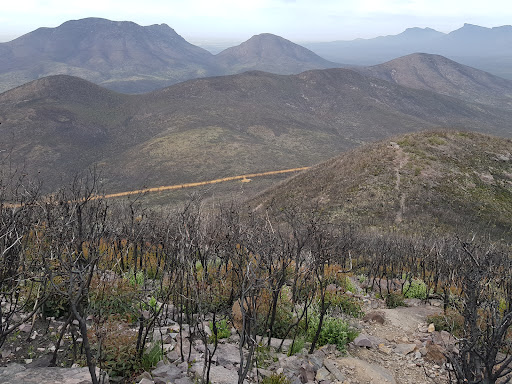 One of the Stirling Range's lesser known hills. Lots of loose crumbling rock much like the near-by Mt Toolbrunup but not nearly as precarious. If you do the climb before sunrise like I do then watch for the large spiders that string webs between every tree. The track is not particularly well mapped near the summit and after the fires of a year ago the track can easily be lost from sight but not so bad that a climber would get lost. There are a few wooden marker posts near the summit but the new post wildfire re-growth has obscured a few of them. The views are sublime at sunrise or sunset and evidence of ancient ocean floors can be seen around the peak. The track is one of the Stirlings easiest and shortest too with only a 430 metre elevation from...