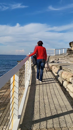 Read moreBronte Beach is glorious wide beach. It’s a cove, but very very long and at one end is an ocean pool. This is a very cool thing because when it’s high tide, the waves from the ocean break over the edge of the pool so you get salt spray and maybe drenched. There are various sets of steps into the pool. I got there at 9:30 and the local swim club was doing some adult races and training so a portion of the pool had lane dividers for them but there was plenty of pool available for everyone else. All along the ocean edge of the pool was a ledge, maybe 4 feet below water, so you could stand on the ledge and look out at the ocean or put your back to the ocean and look at the other swimmers and the very cool sculpted sandstone cliffs on the other side. When I got there I asked a lifeguard if it was safe to leave my stuff and she said definitely no problem; then I asked an older lady who was going into swim with her goggles and bathing cap and she said definitely it’s fine - just find a spot near the rocks, it’s very safe (which it was). Everyone is doing the same thing.