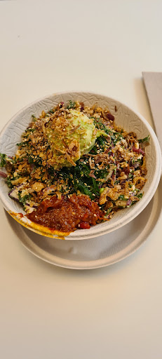 Needed a quick bite before a gig down at The Bridge and noticed this open on Easter Saturday. So glad we opted for this - was aware that Fishbowl is a chain and glad my first experience was at Rozelle. Salad was filling and delicious - went with the OG chicken, very tasty sauce and opted for a base of brown rice and cabbage which I think was a perfect blend as a companion just had rice which I think filled him up too much. Service was patient and friendly considering it was our first time so took us a while to make decisions. The restaurant had cool, comfy seating and seemed to be doing a roaring food pickup service. I think this is a very budget friendly place to eat a good meal. The only things I would love to see for improvement is - even though I rate the size of the meal and its appearance when served as awesome, I did find it a bit frustrating that the size of the bowl makes it difficult to mix the toppings into the base until you’ve gotten quite a number of bites into the meal - maybe bowls could be slightly larger ? Secondly, when ordering my meal there was a display cabinet of drinks, none of which really appealed to me on sight and just when I had resigned myself to having no liquids during the meal we realised after sitting for a bit that they had free tap water and glasses down near the prep section of the counter. I guess I just want people to be aware of this in case they feel obliged to buy a drink - you can get free water which again is another awesome service. Enjoyed the meal thoroughly and am looking forward to trying different bowls and different locations...