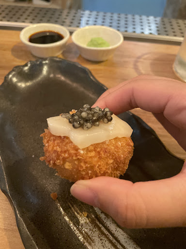On this night, I was treated with dishes such as foie gras in hen egg (my favourite; i want to eat this again š), potato mochi, delicious sashimi, beautiful grilled fish, scampi, 3 cuts of meat with 3 different wasabis and you canāt forget that hojicha flan with donut ice cream. (I still need that recipe š¤Ŗ)