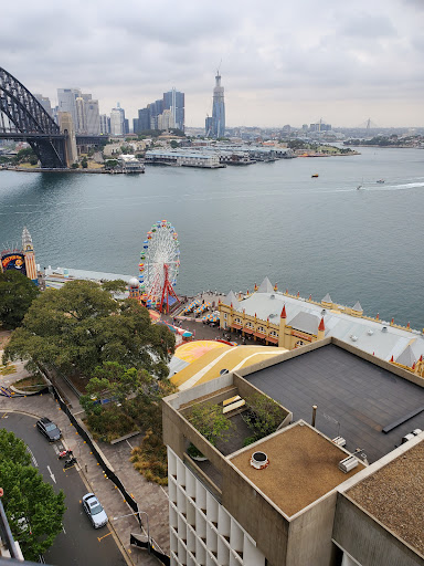 We booked a one-bedroom apartment for 17 nights in The Milson building via the agent Kirribilli Village Apartments (who have their own website) and this worked well - they were very competent, thorough and obliging. There are other agents who also rent apartments in this building.||||Our apartment was on the 10th floor on the bay/west side and was of 'superior' designation, thus giving the advertised 'partial view' of the Harbour Bridge. In the event, we found this aspect had been understated: the Bridge is large and clear to the left from the balcony, with the direct view being of the upper harbour and, below, Lavender Bay. In all, this view was utterly spectacular and a real pleasure for us. Note, though, you should try to ensure you get an apartment no lower than the 7th floor; below that level, the direct view becomes obscured by a building across the street, although the Bridge always remains clearly visible from the bay/west side of the building.||||The apartment itself exceeded our expectations. The lounge/dining area was most spacious, the bedroom was a good size, as was the bathroom. The kitchen, though, was very small indeed, with virtually no counter space. Note I believe that no two internal layouts of these apartments are necessarily the same, so other kitchens may be more spacious. The kitchen was equipped with a small fridge, hotplates and micowave, plus a good supply of crockery, utensils, etc. There was a large, full-length balcony with table and chairs.||||We found the location to be excellent for getting about. The Milson's Point train station is about 3 minutes' walk away, from where trains run every few minutes across the Bridge into the city. Alternatively, you can walk over the Bridge itself, surely one of life's great experiences. Alternatively, a ferry leaves from Milson's Point dock, about a 10-minute walk away, for Circular Quay every 30 minutes. This short journey, passing under the Bridge and past the Opera House. must be one of the world's most iconic mini-jouneys.||||There is a nearby convenience store, open 7 days, just a minute's walk away, where you can get provisions. A wider selection of shops, in Kirribilli Village, is 5 minutes' walk.||||There is, however,. one disadvantage to the location ( and virtually all others on Milson's Point) and that is its proximity to the Luna Park fun fair, directly below. This park operates 7 days a week, 12 hours a day (longer on weekends) and the noise is constant. It's not so much noise of the fair itself, but the shrieks of people on the rides. This is clearly audible on the balcony (even on the 10th floor) where it can get irritating but, inside with the doors closed, it's not really noticeable.||||We were very satisfied indeed with our apartment in The Milson (and with the service of Kirribilli Village Apartments) - it really made our holiday. We can highly recommend it, if you don't mind the background noise of...
