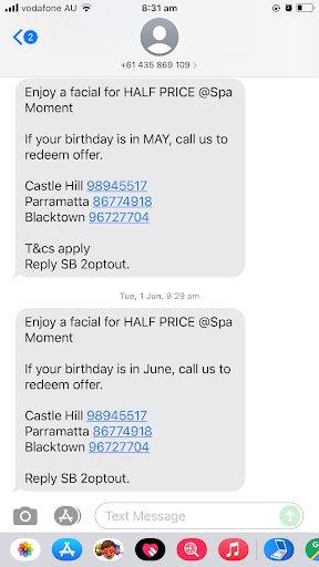Hi, i went to spa moments which is parramatta westfield next to priceline pharmacy yesterday. i came to do full face wax as i always come there to do so and for facials too. there was a lady who was going to do face wax for me. i generally ask her if i do the mini facial along with wax how much will it gonna charge as i told her i did it before too the lady at the counter please ask her she went there and came back and give me spa moments price list and said she did't know you and she did't have your ph no. too i told her am just generally asking but that lady was so rude to me that i left the service and came out to talk to lady on the counter4 she was again came there and arguing with me. i really dnt understand what kind of customer service is this. How can you send your customers happy if you dnt know how to talk to them. Work is work should not show attitude at work as its really not work ethics. Let me tell you one more thing i am a regular customer there coming there from ,last 5 years i guess. You just lost your regular client because of this behaviour. Also lady told me we dnt have your no. too just check the photo i have uploaded as being a regular client am getting messages from spa moments. How could she say that to me when i checked with the lady standing at counter she told me i told her i dnt know your no. but she said she even dnt know you and dnt have your no. Really Really i will now never ever come back because such kind of behaviour i will not gonna tolerate at all. As service is only good if you deal with your customers nicely thats...
