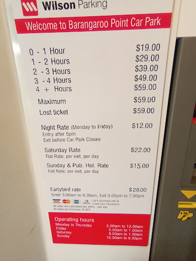 Read moreWilson Parking at Barangaroo Point is fairly average overall. It provides ample parking space, and the location is great for accessing nearby areas, especially Barangaroo and the waterfront. However, the prices are on the higher side, which might not feel worth it for short stays. The signage could also be clearer, as it’s a bit tricky to navigate for first-timers. Staff are helpful, though the automated system can sometimes be confusing. Overall, it’s a convenient option, but not without a few minor frustrations. Just make sure you’re prepared...